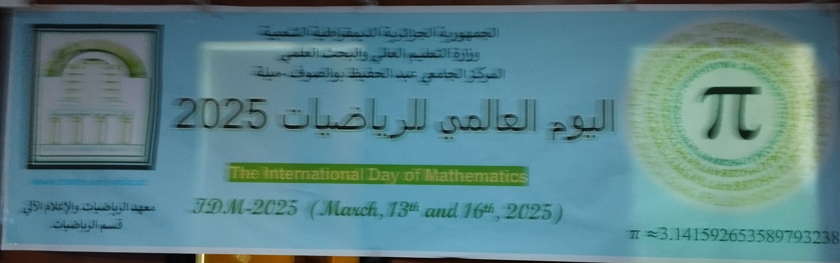 ينظم معهد الرياضيات والاعلام الالي MI بالمركز الجامعي عبد الحفيظ بوالصوف ميلة يومي 13و16 مارس بمناسبة اليوم العالمي للرياضيات المصادف ل 14 مارس من كل عام احتفالية تفاعلية بهذه المناسبة حيث سطر قسم الرياضيات برنامجا مكثفا احتفاء بهذه المناسبة. وذلك بحضور نواب مدير المركز ومدراء المعاهد ومدير حاضنة الاعمال للمركز الجامعي ميلة و اساتذة المعهد وطلبة الدكتوراه وجم غفير من الطلبة المهتمين بهذه النشاطات العلمية. بعد الاستماع لايات بينات من الذكر الحكيم و النشيد الوطني . تولى الكلمة مدير معهد الرياضيات والاعلام الالي البروفيسور عبد الوهاب محمد الصالح الذي رحب…